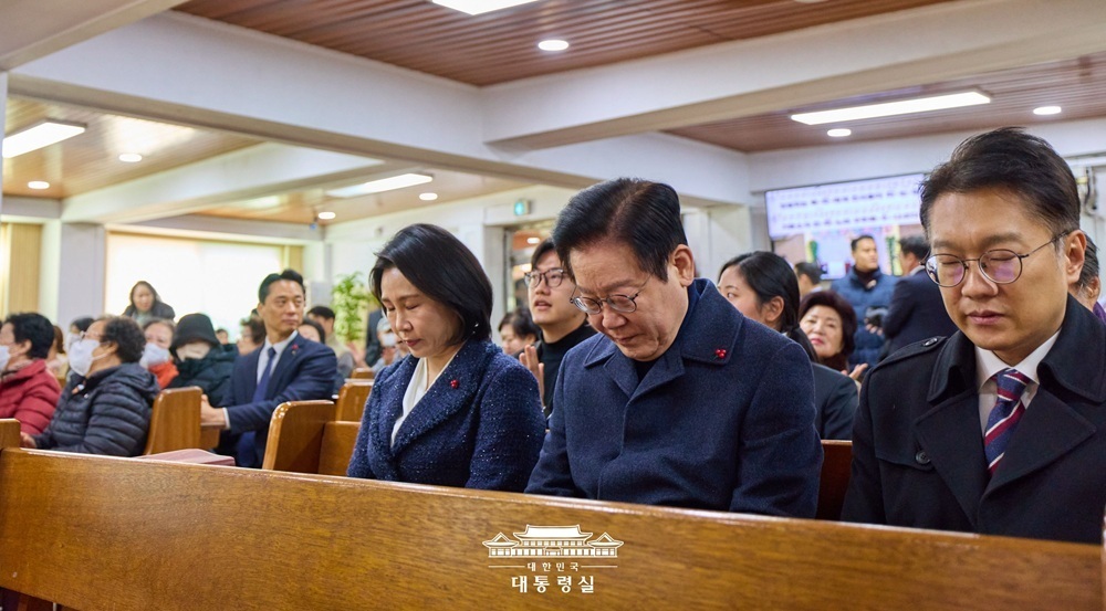 이재명 대통령 부부가 25일 오전 인천 해인교회 성탄 예배에 참석했다. 대통령실 제공