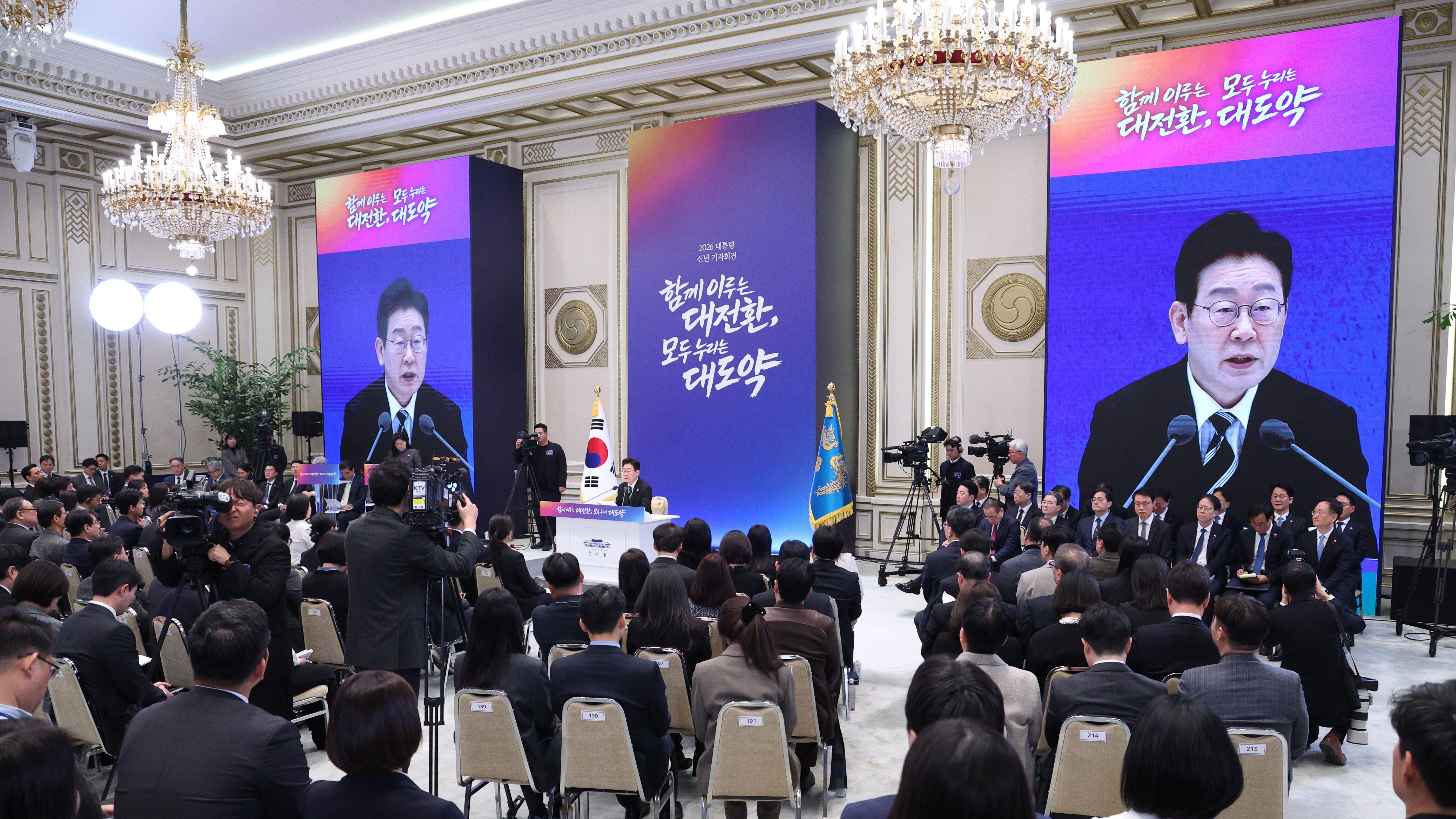 이재명 대통령이 21일 청와대 영빈관에서 열린 2026년 신년 기자회견에서 발언하고 있다. 뉴시스