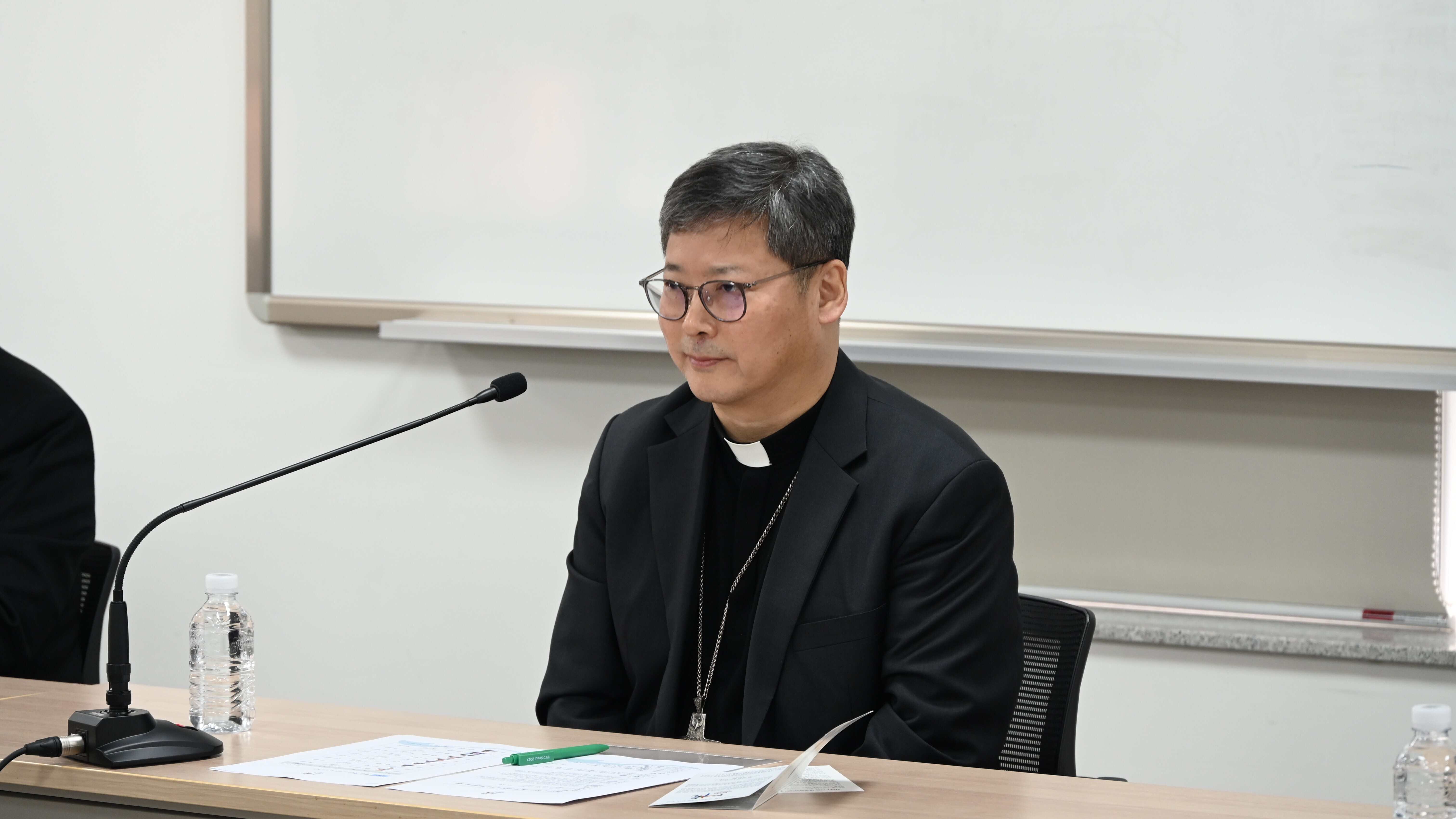 서울대교구장 정순택 대주교가 13일 서울대교구청에서 서울시의회 2027 서울 세계청년대회 지원 특별위원회와 간담회를 하고 있다. 이준태 기자