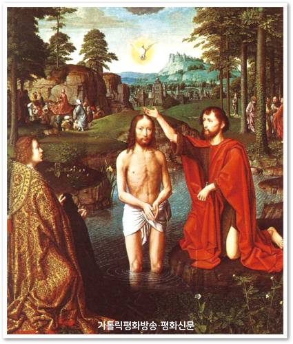▲ 제라르 다비드 작 ‘예수 세례’, 16세기 초, 벨기에, 브뤼헤 그로닝헤 미술관. |