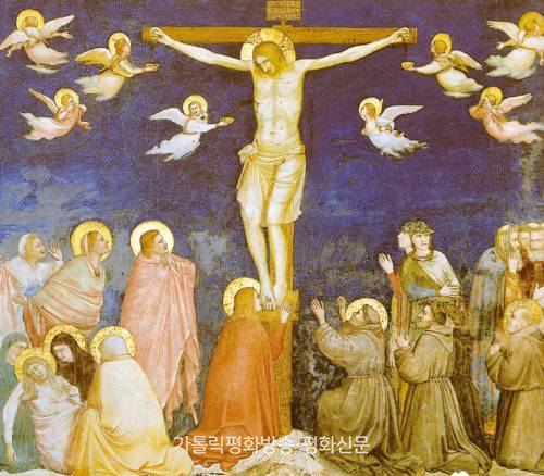 | ▲ 프란치스코 성인은 그리스도와의 인격적 만남을 통해 세상 안에서 자기 삶과 현존의 의미를 깨달았다. 그림은 조토가 아시시 성프란치스코 대성당에 그린 프레스코화로 프란치스코 성인이 예수님의 수난에 참여하고 있음을 보여준다. |