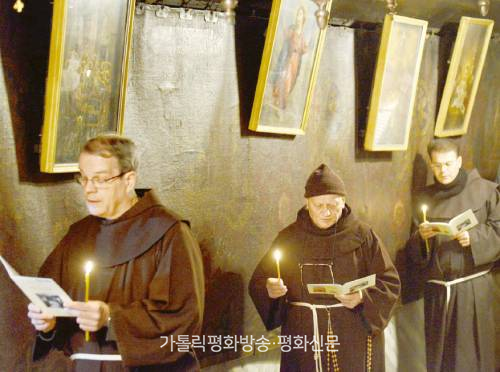 | ▲ 프란치스코 성인은 “덕은 하느님의 속성이므로 완덕의 삶을 살아갈 것”을 형제들에게 권고했다. 사진은 프란치스코회 수도자들이 촛불을 밝히고 기도하고 있다. 【CNS 자료 사진】 |