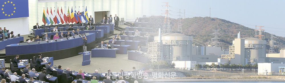 ▲ 유럽의회가 EU택소노미에 원자력과 천연가스를 포함하는 안을 통과시켰다. 이는 EU가 원전을 선택했다는 것이 아니라 오히려 원전이 과도기적 에너지라는 한계가 명확해짐을 드러내고 있다. 사진 왼쪽은 유럽의회, 오른쪽은 국내 원전 시설. |