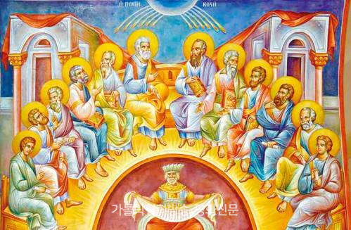 ▲ 펜테코스테 이콘은 성령 강림과 하나이고 거룩하고 보편되고 사도로부터 이어오는 교회를 드러내는 거룩한 표징이다. |