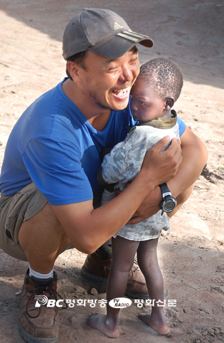 울상을 짓고 있는 아이를 꼬옥 안아주는 이승준 신부.