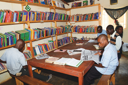 무거운 마음을 안고 동네 안쪽로 더 들어가니 도서관이라고 쓴 허름한 건물이 나온다. 칠중가모 고아원 부설 도서관이다. 2006년에 세웠다는 도서관은 눈대중으로 10평이 될까말까한 흙벽돌 건물로, 열람실 1개 실에 자습실 1개 실이 고작이다. 책은 대충 2000권쯤 된다고 한다. 그런데도 하루 이용객은 80명에서 100명쯤 된다. 성인문맹률이 36(460만 명)에 이른다는 나라에 이나마 도서관이 마을 한 복판에 세워져 있는 걸 보니 다소 위안이 된다.