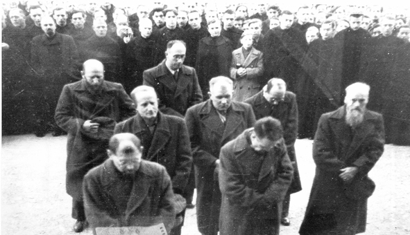 ▲ 6ㆍ25전쟁 당시 북한군에 의해 수용소에 억류됐다가 풀려나 독일에 돌아온 성 베네딕도회 성직자와 수도자들이 침통한 표정을 짓고 있다.