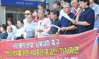 대전ㆍ세종ㆍ충남 4대 종단 종교인들은 8월 24일 오전 대전시 서구 계백로 기독교연합봉사회관에서 기자회견을 열고, 남북 대화를 통한 한반도 평화를 촉구했다.