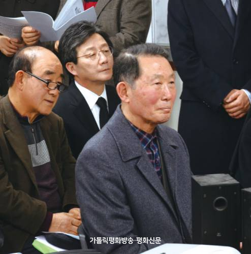 ▲ 고 김훈 중위의 아버지 김척씨가 아들의 19주기 추모 미사에 참여해 아들의 죽음을 기리고 명예가 회복되길 기원했다. 이정훈 기자 |