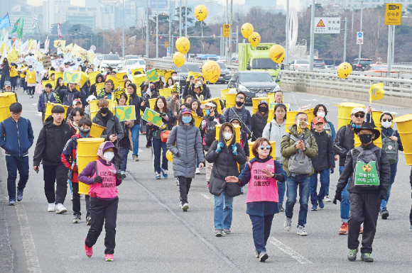 행진에 참가한 강서아이쿡생협 이진영(41)씨는 “핵발전소의 위험성을 더 널리 알리고자 행진에 참여했다”며 “아이들에게 핵발전소로 인한 편리한 세상보다 핵 없는 안전한 세상을 물려주고 싶은 바람”이라고 밝혔다.