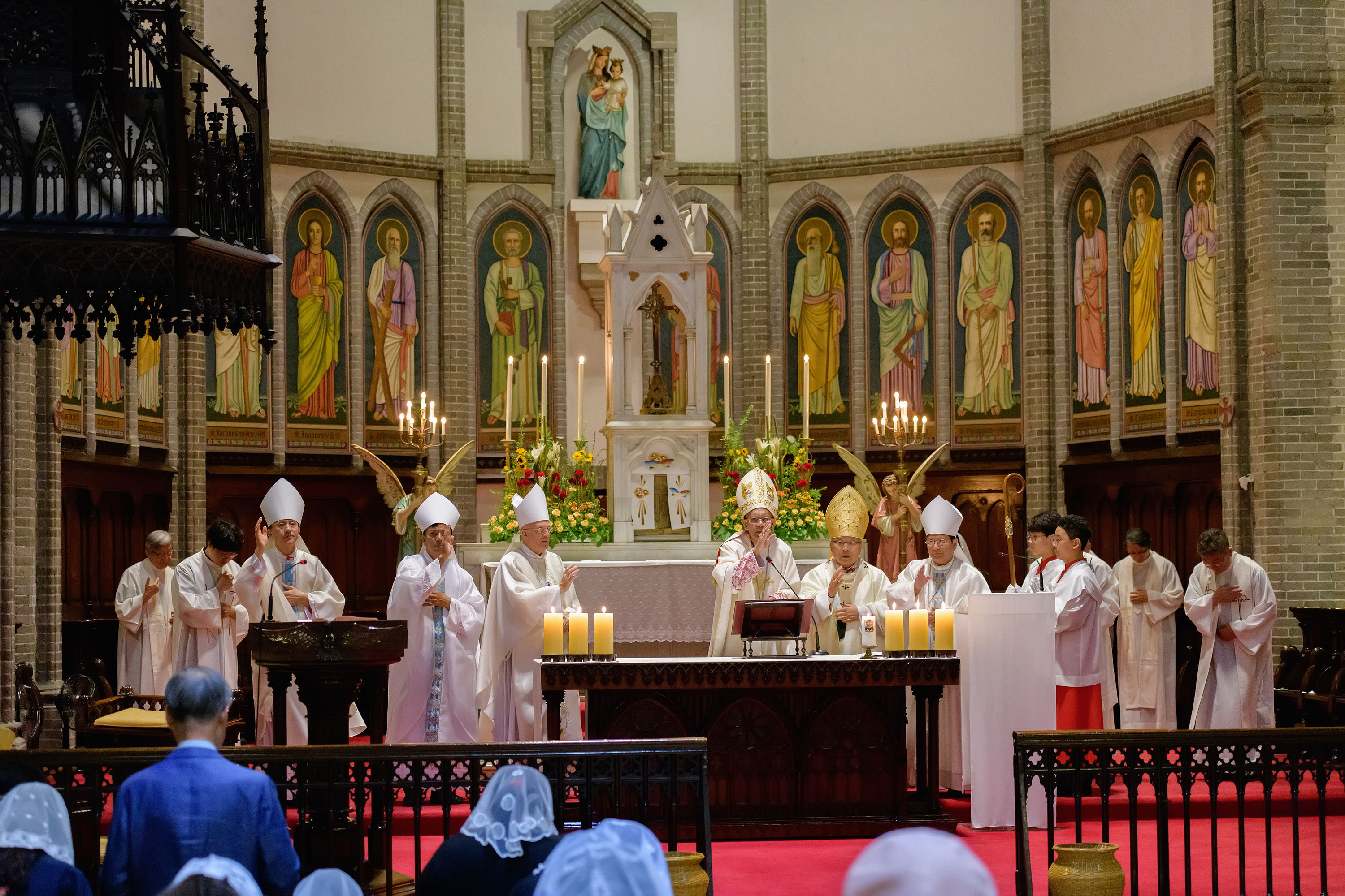 △ ‘한반도평화나눔포럼’ 참석차 방한한 찰스 마웅 보 추기경(염 추기경 오른쪽)이 염수정 추기경 등과 함께 ‘민족의 화해와 일치를 위한 미사’를 공동 집전하고 있다(2018. 9. 4, 명동대성당).