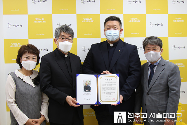 오늘(19일) 바보의나눔 사무국에서 진행된 전달식에는 아현동성당 주임 김현 신부, 본당 운영위원장 박정선 다니엘, 여성 총구역장 이성애 수산나, 바보의나눔 사무총장 우창원 신부가 참석했다.
