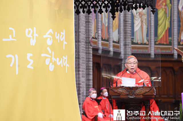 염 추기경은 이날 강론에서 9년 5개월 동안 서울대교구장을 지내면서 느꼈던 ‘감사’와 ‘용서’의 마음을 전했다. “사제로 51년을, 주교로 20년을 살아왔고, 9년 반은 교구장이라는, 부족한 제게는 너무 버거운 십자가를 지게 됐다”며 “하느님께서 많은 은총을 주시고, 좋은 협조자들을 보내 주셔서 임기를 마칠 수 있게 됐다”고 감사를 표했다. 이어 “교황님이 당부하신 양 냄새나는 착한 목자로서 저의 모든 것을 다 바치려고 했지만 능력이 부족함을 뼈저리게 느꼈다”라고 돌아봤다.