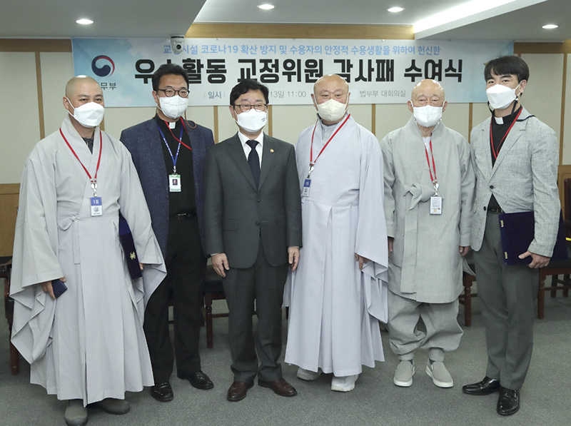 서울대교구 사회교정사목위원회 위원장 현대일 신부와 대전교구 교정사목 전담 나기웅 신부가 4월 13일 정부과천청사에서 법무부 우수활동 교정위원 감사패를 받았다. 이들 외에 교정위원 중앙협의회 황우종(법명스님) 회장, 허부경 명예회장, 연합회장 김철환씨 등 32명이 감사패를 받았다.