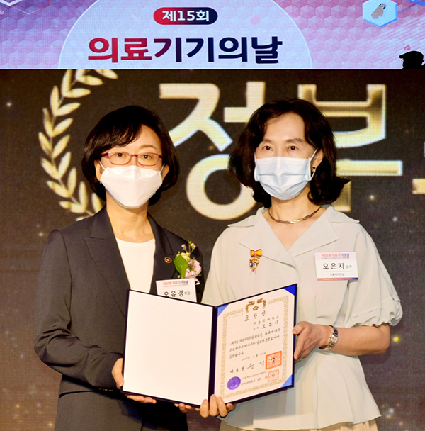 | ▲ 의료기기의 날 기념 행사에서 대통령 표창을 수상한 오은지(오른쪽)교수. |