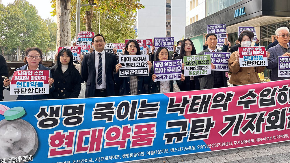 한편 태아·여성보호국민연합은 10월 30일 먹는 낙태약을 국내에 도입하려는 현대약품을 찾았다. 태여연은 이날 서울 강남구 봉은사로 현대약품 사옥 앞에서 기자회견을 열고 “낙태약 도입은 생명을 죽이는 선택이자 국민의 신뢰를 잃는 길”이라며 기업의 윤리적 결단을 촉구했다.