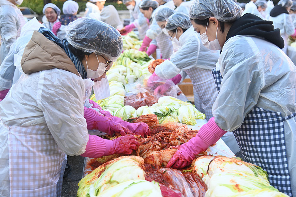 이번 행사에 참여한 봉사자는 주교좌명동본당을 포함한 각 본당 신자들과 교구 사회사목국 산하 위원회(단체)와 청소년국·신학생 등이었다. 베트남에서 유학 온 신학생들도 즐거운 표정으로 구슬땀을 흘렸다. 이들의 노력 끝에 완성된 김치의 양은 16ℓ짜리 김치통으로 700여 개. 서울가톨릭사회복지회를 비롯해 교구 빈민사목위원회·이주사목위원회와 한국중독연구재단(KARF) 산하 단체에 배분돼 다양한 취약계층에게 전해질 예정이다.