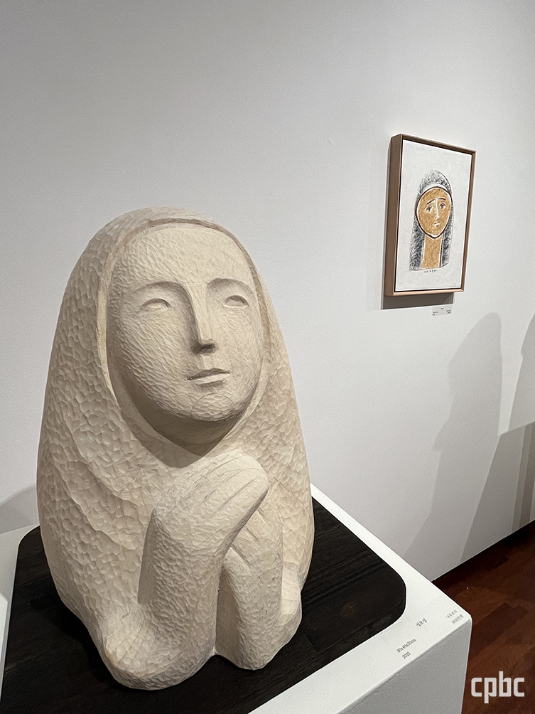 “모두 성상이니까 기도의 매개체잖아요. 내 작품이 아니라 많은 사람이 기도하는 데, 신앙생활 하는 데 도움이 되면 좋겠다는 마음으로 작업했어요. 특히 성모님이나 성모자상을 많이 작업했는데, 그냥 아기가 아니라 예수 그리스도잖아요. 팔을 연결하면 십자가가 돼요. 또 그냥 어머니가 아니라 우리의 어머니인데, 성모님이라고 하면 하늘에 계신, 나와는 먼 분처럼 느껴지니까 내 안의 어머니로 느낄 수 있도록 한국적인 이미지로 표현했죠. 기도의 매개체가 되도록, 도움이 되려고 작업했던 작품들을 내보이는 거니까 관람객들이 보시고 느낄 수 있으면 좋겠어요.”