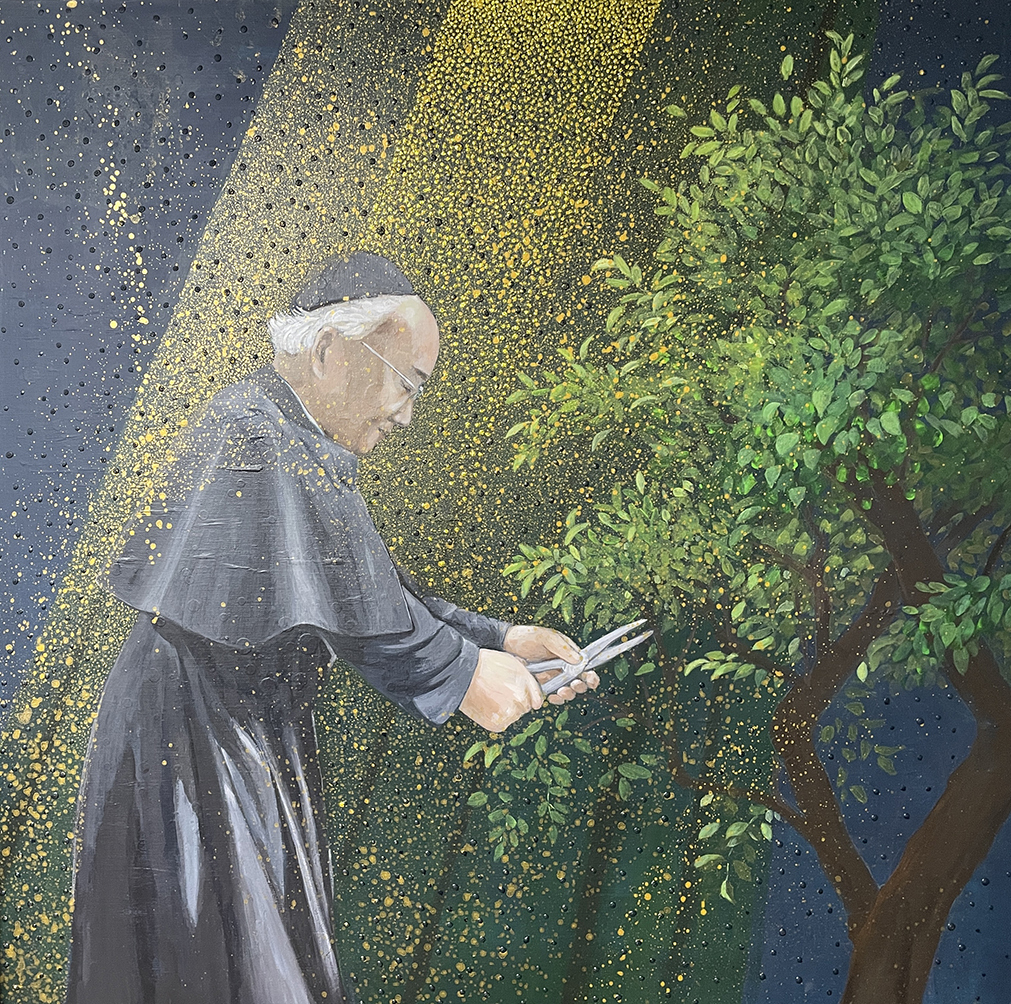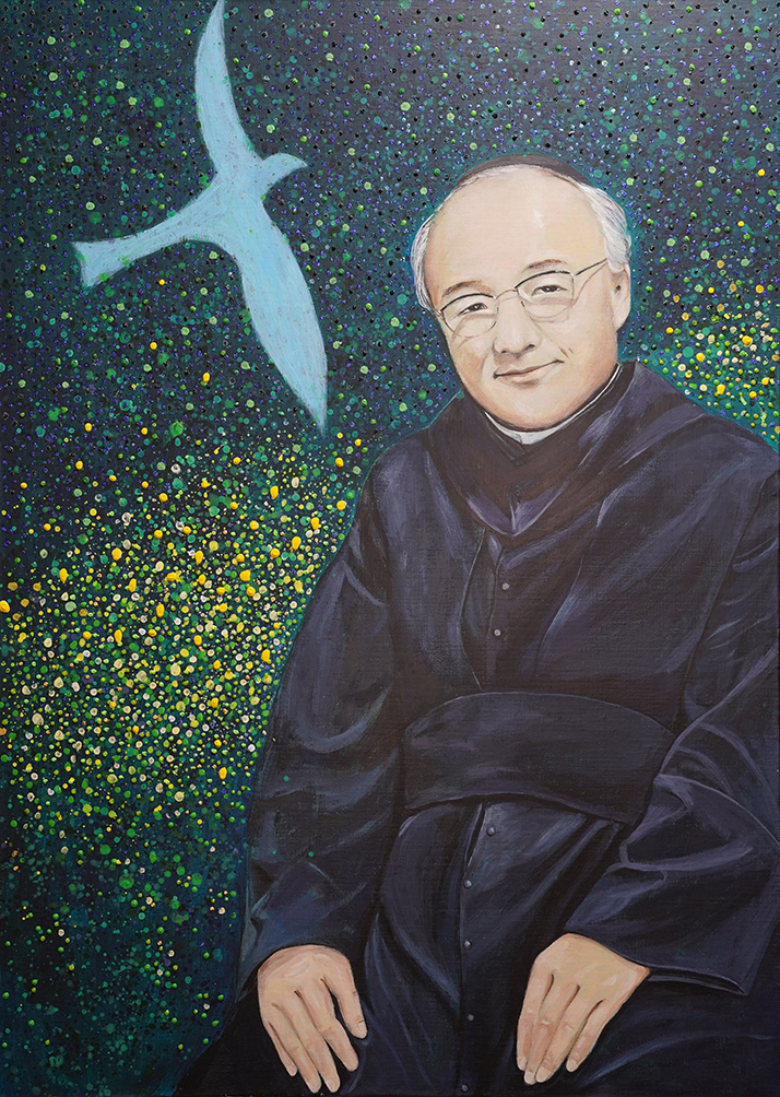 구 수녀는 “신부님의 삶이 바로 점과 점으로 이어져 하느님께 향한 사랑을 완성하는 영원한 기도였음을 회화로 표현했다”며 “색채와 구도는 고요하지만 역동성을 줬고, 신부님이 생애 마지막 순간까지 잃지 않았던 미소를 담고자 노력했다”고 전했다.