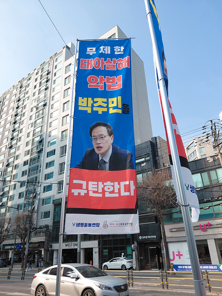 서울 은평구 응암동에서는 연초부터 매일 ‘낙태 반대’ 구호가 울려 퍼지고 있다. 서울 은평구갑을 지역구로 두고 있는 더불어민주당 박주민 의원 사무실 앞에서다. 박 의원은 2025년 12월 30일 낙태약 도입을 비롯해 일정 조건에서는 부모 동의 없이도 미성년자가 낙태할 수 있도록 하는 모자보건법 개정안을 대표 발의했다.