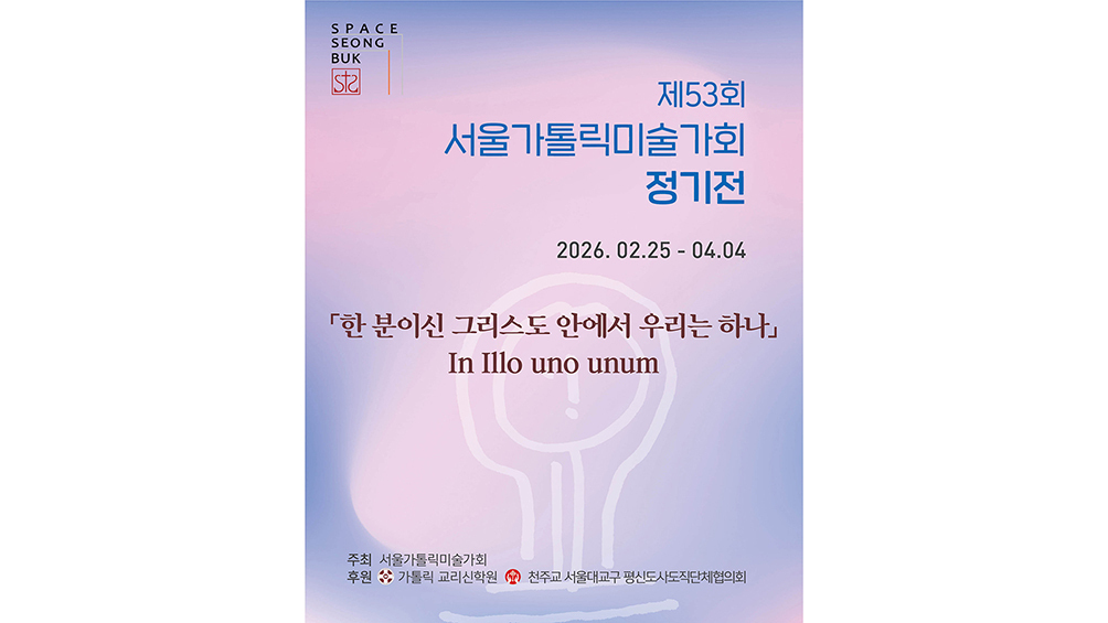 제53회 서울가톨릭미술가회(담당 지영현 신부) 정기전이 스페이스 성북(서울 성북동 기도의집 1층)에서 열리고 있다. 레오 14세 교황의 사목 표어인 ‘한 분이신 그리스도 안에서 우리는 하나’를 주제로, 이를 묵상하고 녹여낸 회화·조각·공예 등 다채로운 작품을 선보인다. 서울가톨릭미술가회 전용 갤러리인 스페이스 성북 개관 이후 처음 개최되는 이번 정기전에는 역대 가장 많은 인원인 85명의 회원이 참여했다. 시노달리타스의 실천 의미를 담아 원로부터 젊은 작가까지 한 공간에서 조화롭게 어우러지도록 구성하되 갤러리 규모가 크지 않은 관계로 전체 작품은 3부로 나누어 전시할 예정이다. 4월 4일까지 매일 오전 11시~오후 6시 무료로 관람할 수 있다. 문의 02-766-3004