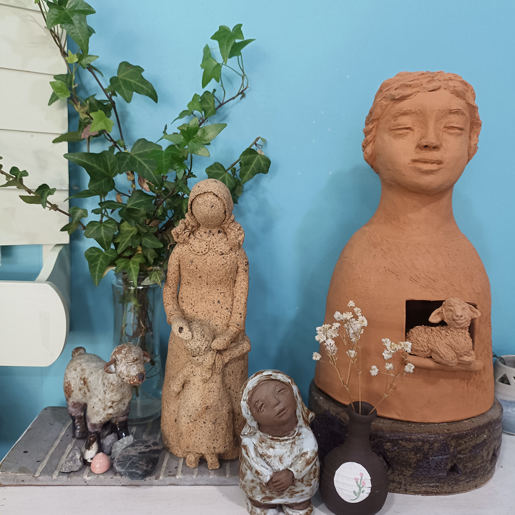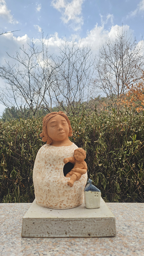자식을 잃은 슬픔의 수렁에서 이씨가 매만진 흙더미는 처음에는 차갑고 무거웠지만 어느덧 따뜻한 품이 되었고, 예수님의 십자가 죽음을 바라봐야 했던 성모님의 마음으로 ‘모자상’을 빚게 했다. 그렇게 흙을 빚으며 스스로 치유해 온 6년의 시간이 50여 점에 고스란히 담겼다.