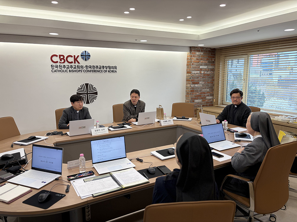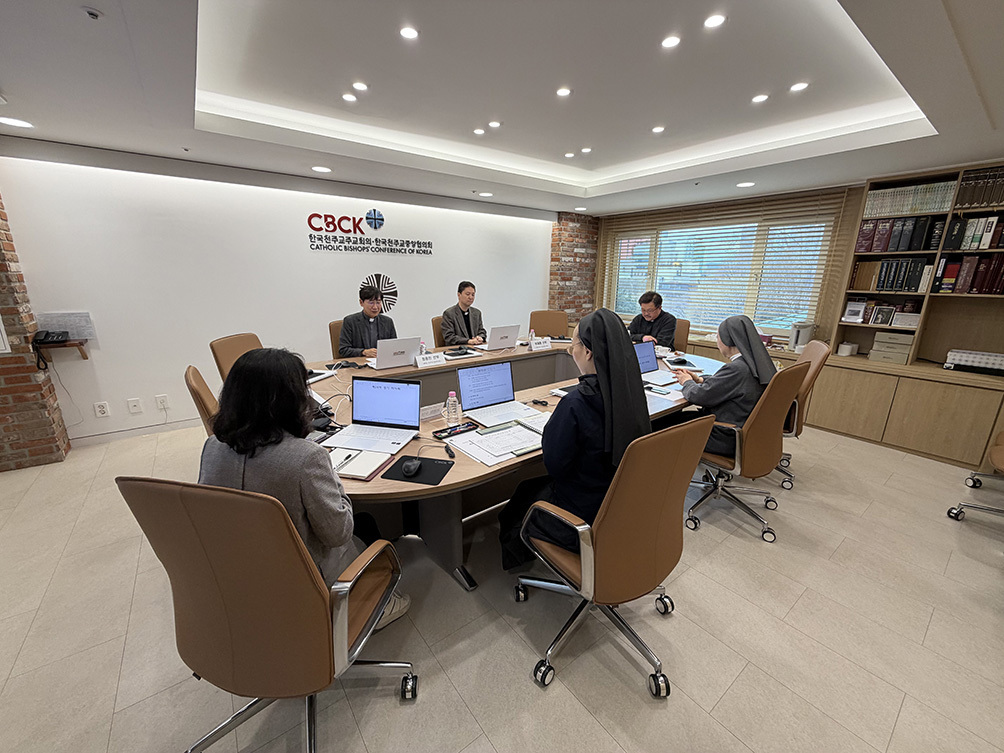 교황청 전교기구 한국지부가 3월 31일 개최한 정기 이사회에서 지부장 정용진 신부를 비롯한 이사진이 해외 선교 지원사업을 심의하고 있다. 교황청 전교기구 한국지부 제공