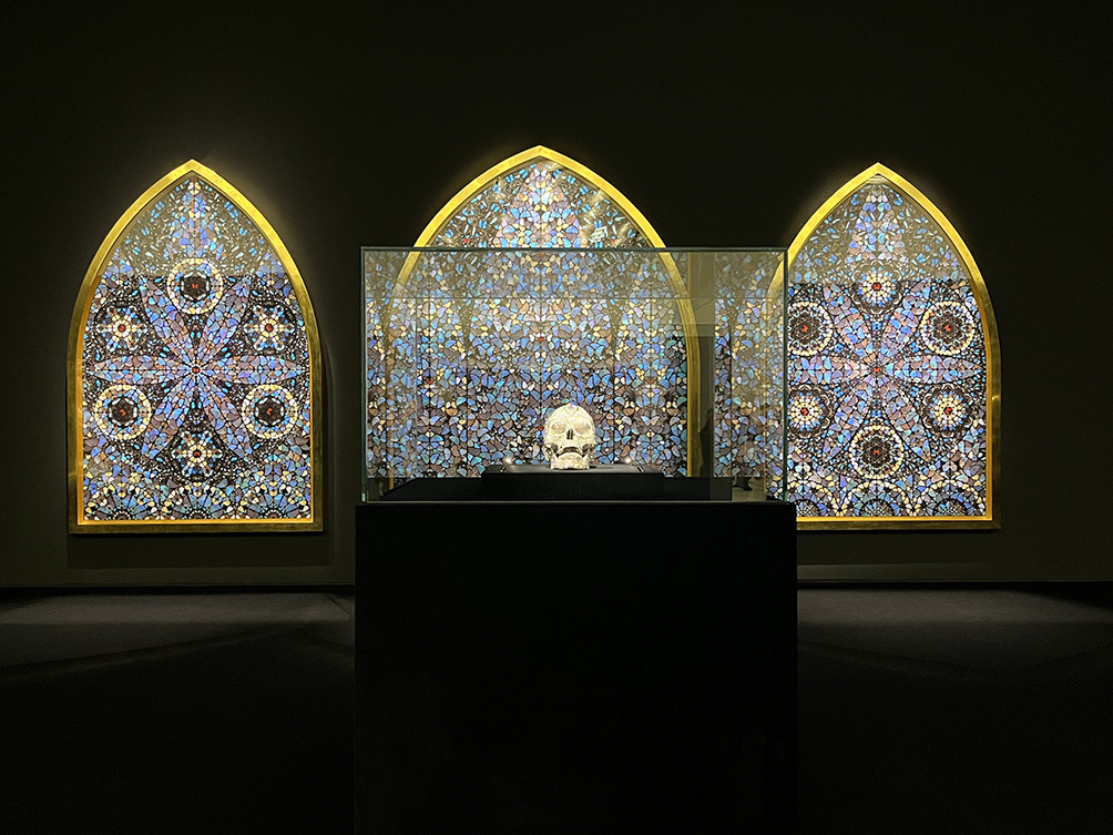 이번 전시에서는 전체 4부 가운데 3부 ‘침묵의 사치’에서 과학과 종교, 예술의 복잡한 관계를 다룬 작품들이 소개되고 있다. 인간의 영혼과 부활을 상징하는 수천 마리의 나비를 사용해 중세 성당의 스테인드글라스를 재현한 삼면화, 두개골을 백금으로 주조하고 8600여 개의 다이아몬드로 장식한 ‘신의 사랑을 위하여’, 산 채로 살갗이 벗겨진 사도의 모습을 담은 ‘성 바르톨로메오, 극심한 고통’ 등이다. 6월 28일까지 관람할 수 있다.