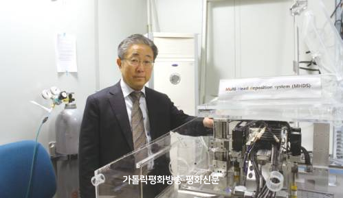 ▲ 조동우 교수가 가톨릭대 성의회관 13층 연구실에서 마련된 3D 조직 장기 프린트를 선보이고 있다. |