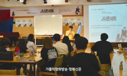 청년JU콘서트는 매달 한 번씩 현장에서 활동 중인 다양한 문화인들을 통해 강의를 듣는 형식으로 자유롭게 진행된다. 강의 주제에 관심이 있는 누구나 참여할 수 있다. 제2회 콘서트는 청년들의 스트레스 해소를 위해 함께 노래를 부르는 ‘떼창’을 주제로 9월 중 선보일 예정이다.