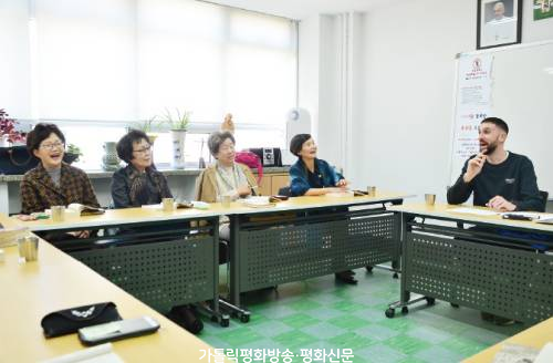 ▲ 서울가톨릭여성연합회 회원들이 원어민 강사와 즐겁게 영어 공부를 하고 있다. |