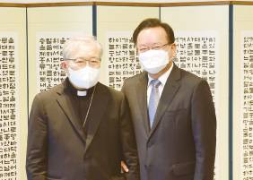 서울대교구장 염수정 추기경이 5월 26일 교구청 집무실에서 김부겸 국무총리의 예방을 받고 환담했다.