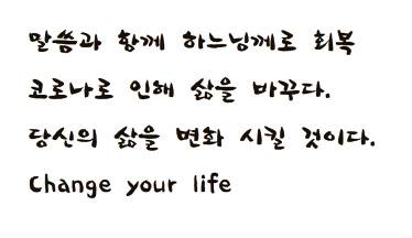 “코로나19 감염이 확산하면서 행사나 강의가 중단돼 필사에 더 매달리게 됐는데, 열왕기를 쓰다가 십자가를 통한 치유를 체험하게 됐어요. 그래서 그때부터 말씀과 함께 하느님께로의 회복을 주제로 한 십자가 그림을 그리고 있습니다. 눈에 들어오는 성구를 쓰고 주변에 그림을 그리는 작업도 합니다. 필사가 제 그림 작업에 영감을 주는 원천이 된 셈이지요. 저만의 서체 폰트를 개발한 것도 성경 필사 덕입니다. ‘석창우체’인데요. 한글과 영문, 두 폰트로 개발해 오는 12월 말 폰트 클라우드 서비스업체인 산돌구름을 통해 선보일 예정입니다.”