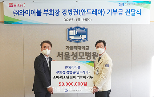 가톨릭대학교 서울성모병원은 17일 ㈜와이어블 장병권(안드레아)