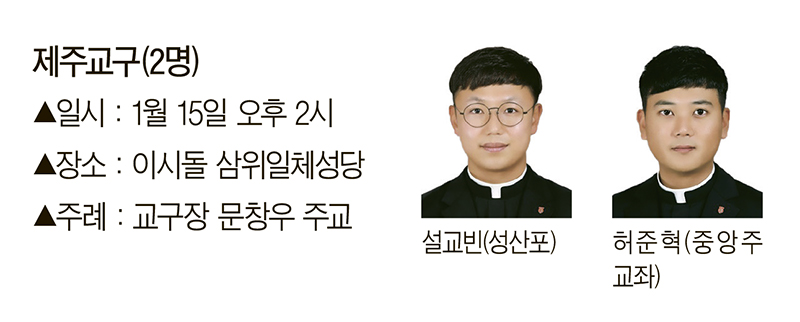 [사제서품] 제주교구(2명), 15일 오후 2시