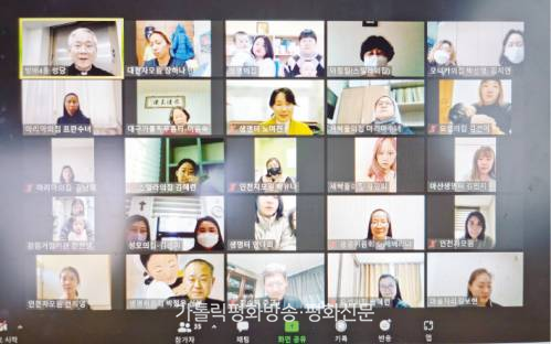 | ▲ 서울대교구 생명위원회 미혼부모기금위원회가 22일 비대면으로 마련한 후원금 전달식에서 참석자들이 화상회의 프로그램을 통해 감사 인사를 나누고 있다. |