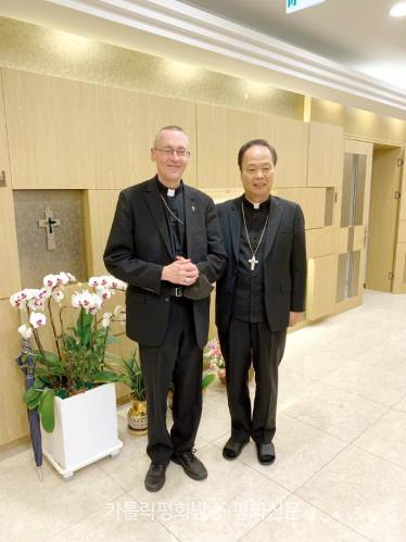 군종교구장 서상범 주교는 3월 19일 서울 용산구 군종교구청 집무실에서 미 군종교구 보좌주교 윌리엄 뭄(William Bill Muhm) 주교의 예방을 받고 양국 군종교구 간 협력 방안 등을 논의했다.<사진>