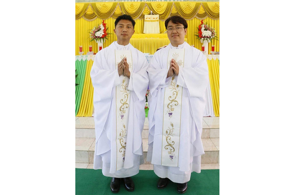 ▲ 한국에서 유학한 미얀마 랄붐텅 신부가 최근 한국 교회 신자들에게“미얀마의 평화를 위해 기도해달라”고 호소했다. 랄붐텅 신부(왼쪽)와 탕자싱 신부가 미얀마 칼레이교구 사제서품식 후 기념 촬영하는 모습. 서울대교구 홍보위원회 제공 |