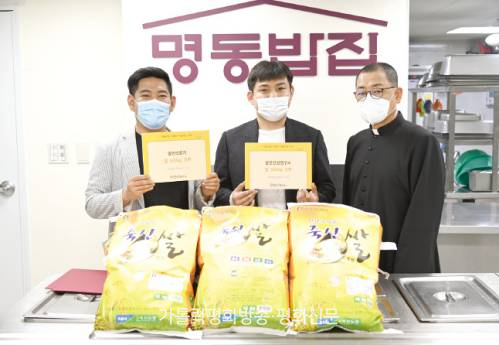 이에 백광진 신부는 “명동밥집에서는 보통 하루에 쌀 100㎏, 한 주에 쌀 300㎏이 소비된다”며 “이렇게 계속 쌀을 구매해야 하는 상황에서 두 대표가 기부해준 쌀 1t은 큰 힘이 된다”고 화답했다.