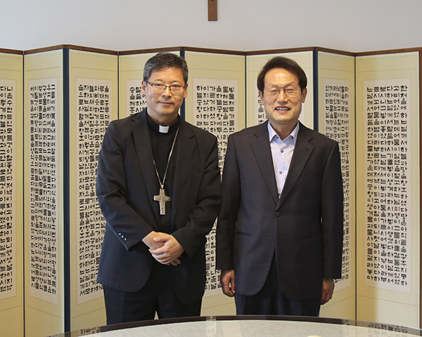 ▲ 서울대교구장 정순택 주교와 조희연 후보 |