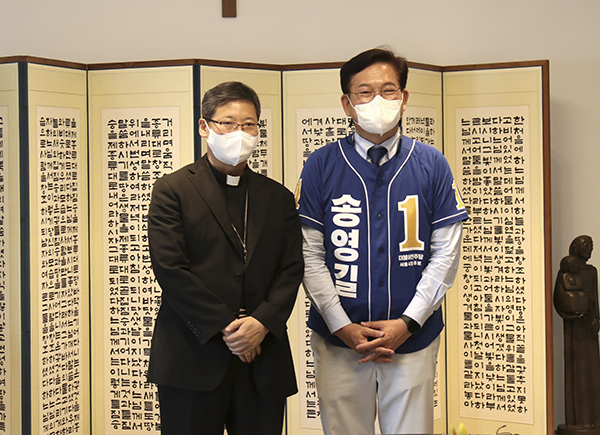 ▲ 서울대교구장 정순택 주교와 송영길 후보 |