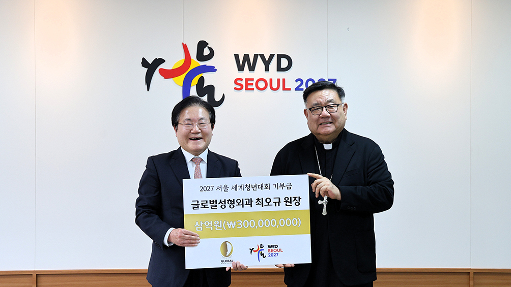 가톨릭대학교 의과대학 총동문회장을 지낸 최오규 글로벌성형외과의원 대표원장이 2027 서울 세계청년대회의 성공적 개최를 위해 서울대교구에 3억 원을 쾌척했다. 최 원장은 15일 서울 명동 교구청에서 2027 서울 세계청년대회 조직위원회 총괄 코디네이터 이경상 주교에게 기금을 전달했다.