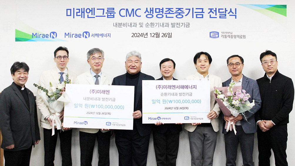 민창기 의료원장은 “미래엔 그룹의 나눔은 가톨릭중앙의료원이 환자 중심의 연구와 진료에 매진하는 큰 원동력이 됐다”며 “연구기금을 밑거름 삼아 난치성 질환 극복을 위한 의학적 성취로 보답하겠다”고 답했다.