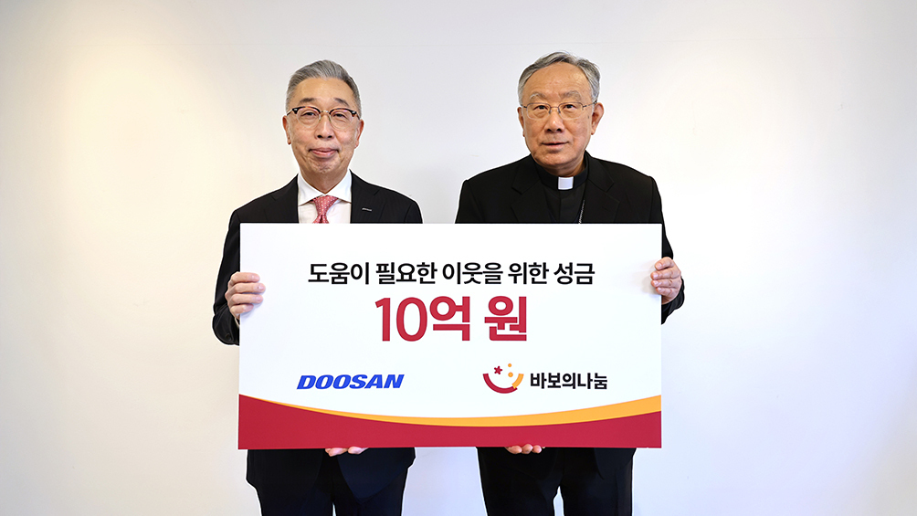 두산그룹(회장 박정원)이 바보의나눔(이사장 구요비 주교)에 기부금 10억 원을 전달했다. 2012년부터 나눔을 이어오고 있는 두산의 누적 기부금은 143억 원에 달한다.