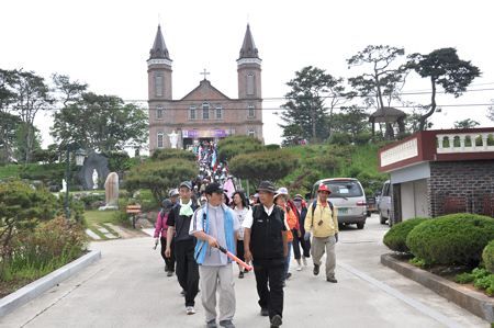한국 103위 순교성인 시성 25주년을 기념하는 내포 도보성지순례가 23일 대전교구 여사울 성지를 출발, 신리성지와 합덕성당을 거쳐 솔뫼성지까지 16Km 구간에서 펼쳐졌다. 교구장 유흥식 주교를 비롯해 김종수 보좌주교, 교구 사제단, 수도자, 평신도 등 1000여 명이 함께했다.