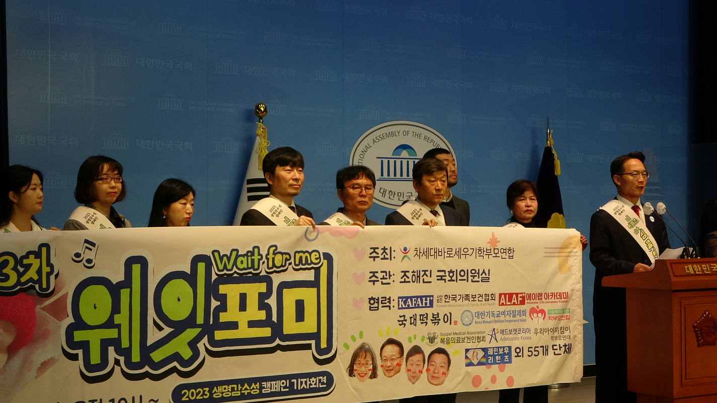 조해진 의원은 오늘 오전 국회에서 가진 기자회견에서 "대한민국은 선진국이 되었음에도 자살률과 흉악범죄율이 유례 없이 높고, 태아 살해가 무차별적으로 자행되고 있다"며 "태아를 비롯해 내 자신과 타인의 생명의 소중함을 일깨우고, 서로를 존중하고 사랑하는 생명존중 운동이 절실하다"고 말했습니다.