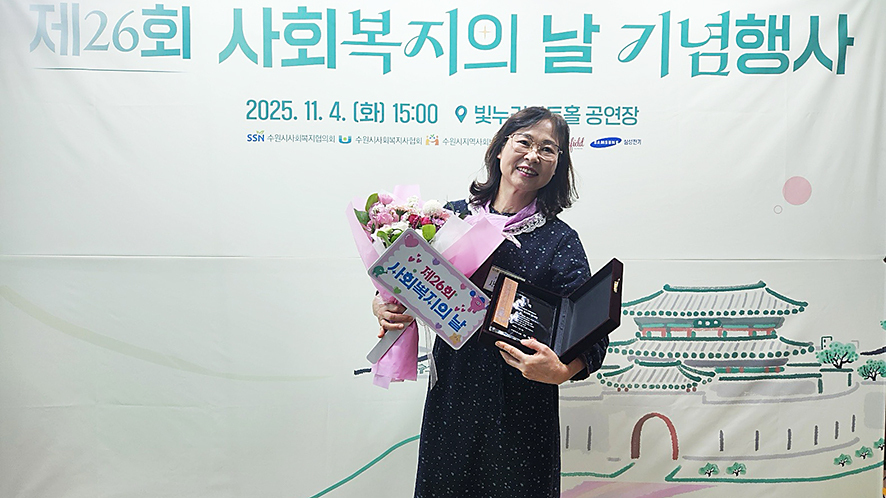 수원교구 사회복음화국(국장 유승우 신부) ‘사랑의 도시락 봉사단'이 4일 제26회 사회복지의 날 기념행사에서 수원특례시장 ‘나눔 유공 감사패’를 수상했다. 수상식은 수원 빛누리아트홀에서 진행됐으며, 강정미 봉사팀장이 봉사단을 대표해 이재준 수원시장에게 감사패를 받았다.