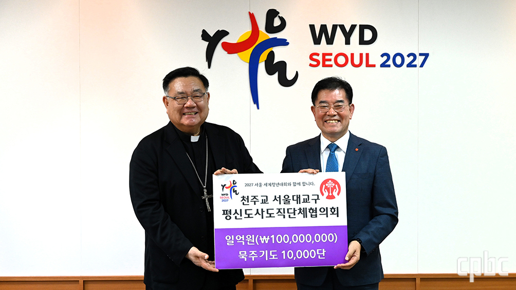 서울대교구 평신도사도직단체협의회(회장 안재홍)가 2027 서울 세계청년대회(WYD)의 성공적 개최를 바라며 1억 원을 기부했다.