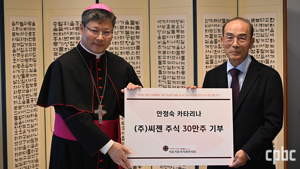 의약전문기업 씨젠 천경준(마티아) 회장이 지난 11일 서울가톨릭사회복지회(회장 정진호 신부)와의 주식 기부 협약식에서 이같이 밝혔다.