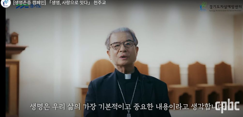 이용훈 주교가 생명존중 캠페인 영상에서 “생명은 우리 삶의 가장 기본”이라고 강조하고 있다. 출처=경기도자살예방센터 유튜브